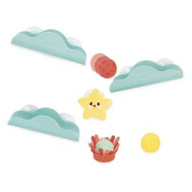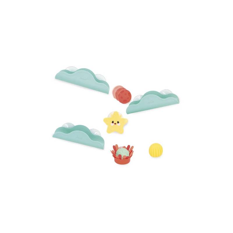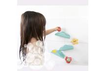 Grâce à ses ventouses, le circuit se fixe facilement sur la faïence de la baignoire ou de la douche. Les enfants s’amusent à créer un parcours vertical, à regarder les balles dévaler les toboggans, tourner l’étoile de mer et finir leur course dans l’eau ou dans l’anémone.