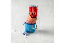 Gilles le perroquet crée une pluie légère en soulevant son gobelet pour laisser couler l’eau par dessous.
