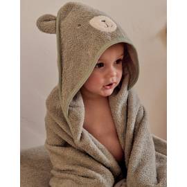 Confectionnée dans une éponge épaisse d’un vert tendre, la cape de bain Orso assure un séchage rapide tout en préservant la chaleur corporelle. Sa capuche intégrée protège la tête de bébé, tandis que le gant assorti complète une routine bain douce et pratique.