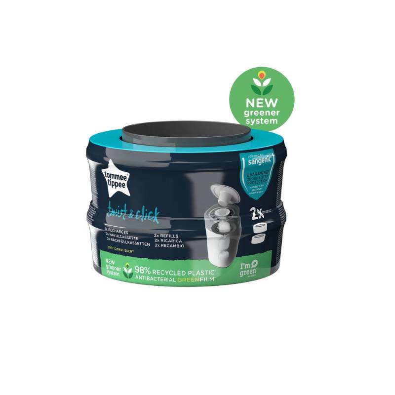 Les recharges Sangenic deviennent plus respectueuses de l’environnement. La performance antibactérienne du film reste la même mais le châssis est désormais conçu à 98% avec du plastique recyclé.
