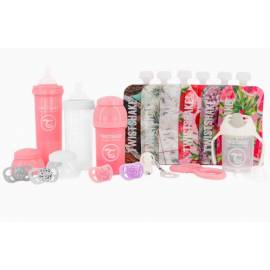 Comprend : 1 biberon anti-colique de 180 ml, 1 biberon anti-colique 260 ml, 1 biberon anti-colique 330 ml, 1 Mini Cup 230 ml, 6 gourde de 220 ml, 1 set de 2 doseur 0-6m, 1 lot de 2 sucettes 6+m, 1 Attache pour tétine, et 1 anneau de dentition