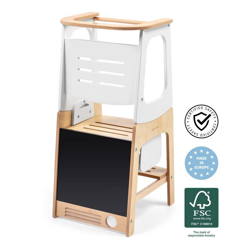 Tour d'apprentissage 3-en-1 | Sécurité certifiée | Tableau noir intégré | Bois certifié FSC® 100%