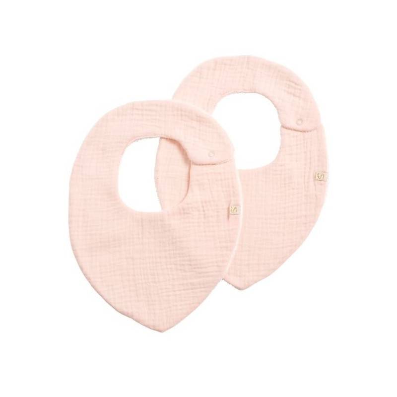 Pour les premiers repas de bébé, Sauthon a décliné un lot de deux bavoirs en double gaze de coton, couleur rose pétale, dans la collection Les Unis.