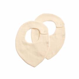 Pour les premiers repas de bébé, Sauthon a décliné un lot de deux bavoirs en double gaze de coton, couleur vanille, dans la collection Les Unis.