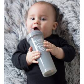 Biberon possédant une contenance de 330 ml, tétine de taille L, adaptée aux bébés à partir de 4 mois et plus.