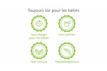 Ingrédients : Formulation hypoallergénique, non toxique et sans parfum, spécialement adaptée aux accessoires de nourrisson.