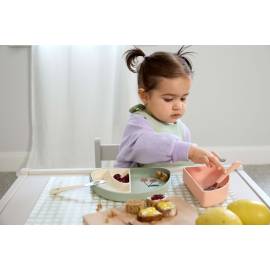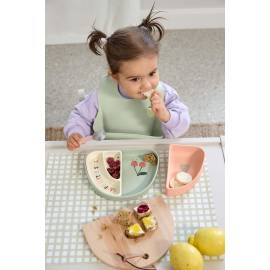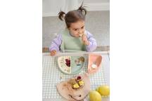 Le set de vaisselle LÄSSIG en forme d’arc-en-ciel transforme chaque repas en moment de plaisir. Composé de trois compartiments séparables, il invite les enfants à trier, mélanger, tremper ou manger à la cuillère de manière ludique et autonome.