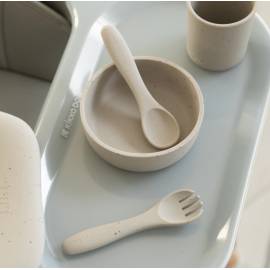 Cet ensemble fourchette et cuillère en silicone platine offre confort, sécurité et praticité. Doux pour les gencives, résistant et facile d’entretien, il accompagne votre tout-petit dans ses premiers pas vers l’autonomie à table, tout en vous assurant tranquillité d’esprit.