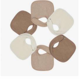 Bavoir Naissance X6 Nid D'abeille 18X21Cm Unis Beige Et Chocolat