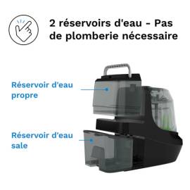 Pas de raccordement plomberie nécessaire : Deux réservoirs amovibles (eau propre et eau sale) pour une utilisation facile, même en déplacement.