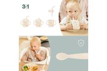 Ce coffret se compose de 3 accessoires essentiels, parfaitement adaptés aux premières étapes de l’alimentation autonome :