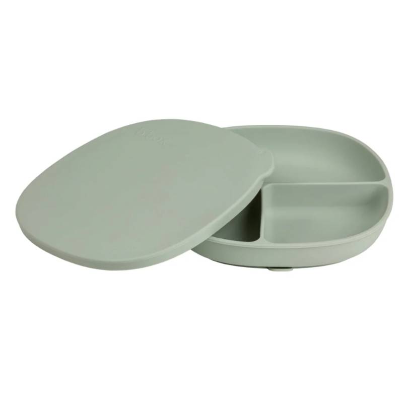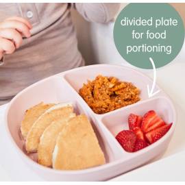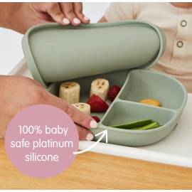 L'assiette à succion en silicone platine avec couvercle a été pensée pour accompagner les bébés et jeunes enfants dans leurs premiers repas… avec style et praticité.