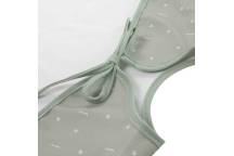 La fermeture par liens à nouer dans le dos permet un ajustement confortable et sécurisé. Bébé peut ainsi bouger, explorer et apprendre à manger seul en toute liberté.