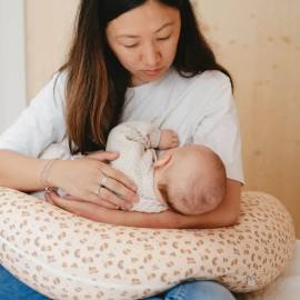 Le coussin 3en1 Multirelax léopard, l’allié confort de la grossesse aux premiers mois de bébé.