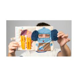 L’enfant s’amuse à soulever ou déplacer les éléments pour révéler les visages cachés, développant ainsi sa curiosité et sa motricité fine. La dernière page réserve une surprise amusante avec un éléphant qui se dissimule derrière ses grandes oreilles.
