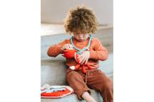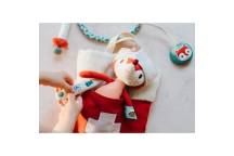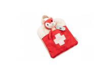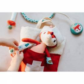 Cette trousse de docteur contient tout ce dont un petit docteur a besoin, y compris un masque. La trousse fait également office de lit pour la petite malade.