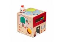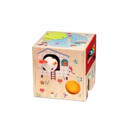 Avec ce cube d’activités en bois sur le thème de la ferme, c’est comme si vous y étiez ! Votre petit bout pourra suivre Paulette la poulette dans ses folles aventures à la ferme : plonger dans l’étang, explorer les faces cachées du cube, se reposer dans son poulailler et encore plein d’autres activités amusantes !