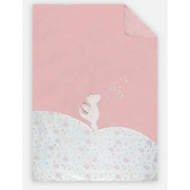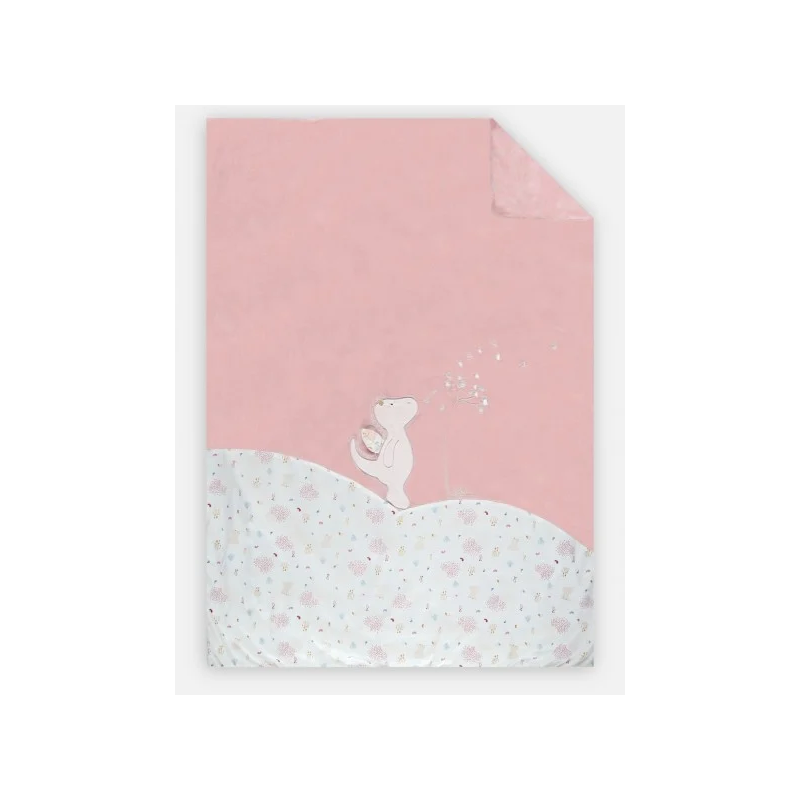 La couverture 100 x 140 cm en Veloudoux bicolore rose et imprimée nature de la collection Lina & Joy