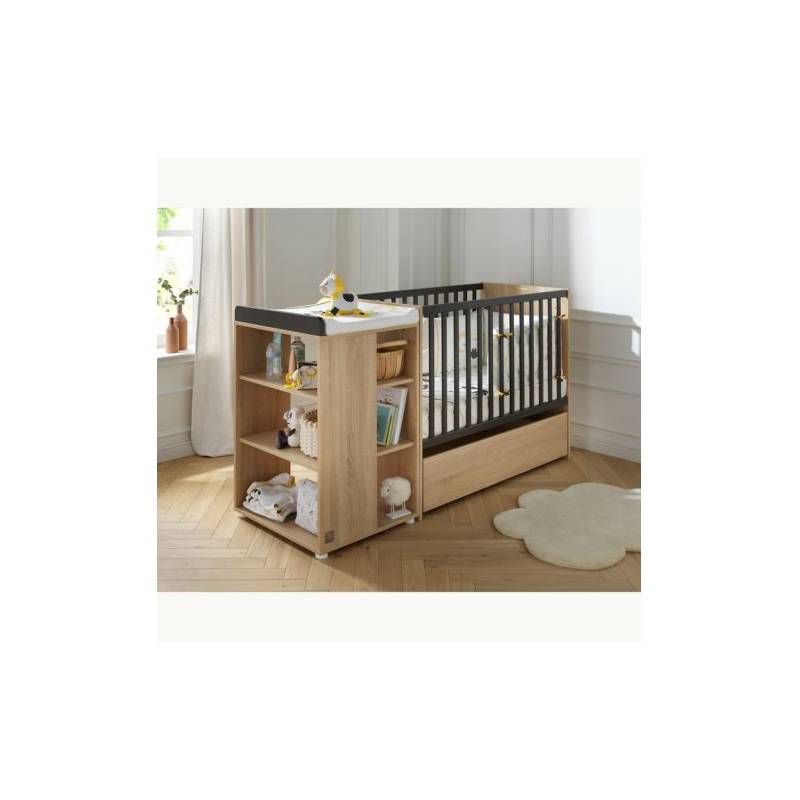 Créez pour votre enfant un cocon de style grâce au lit bébé combiné évolutif Nova. Le lit bébé combiné évolutif Nova au décor bois chaleureux chêne doré vous séduira avec son association au Gris Volcan qui créera une atmosphère chic dans la chambre de votre enfant pour un espace résolument élégant. Pratique, le lit bébé est combiné à sa commode à langer,