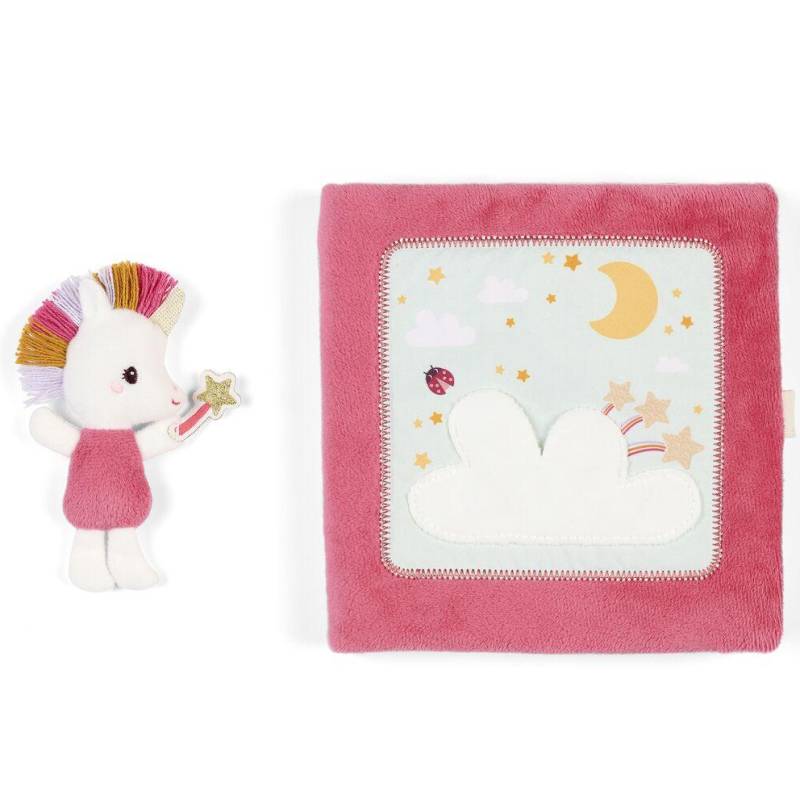 Ce livre d’activités en tissu met en scène Lena la licorne, un personnage bienveillant qui veille sur le sommeil de ses amis. Page après page, elle chasse les cauchemars et les transforme en doux rêves, accompagnant l’enfant vers un endormissement serein.