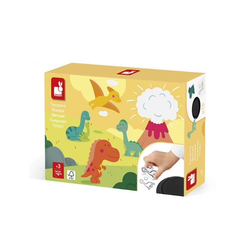 Le set DINO STAMPINOO - 15 TAMPONS de la marque Janod propose une activité ludique et créative pour les enfants dès 3 ans.