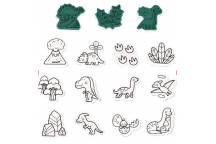 Thème : Dinosaures (Tricératops, Diplodocus, etc.) + éléments de décor (volcan, plantes, etc.)