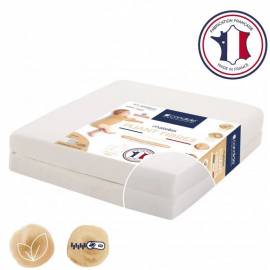 Sain et éco-responsable : choisir le matelas bébé pliant fibres 60x120cm c'est faire un choix raisonnable. Vous choisissez un matelas bébé conçu avec des matériaux recyclés de qualité, vous donnez ainsi une seconde vie aux matières. Candide vous garantit que ce matelas pliant pour bébé est sans traitement, vous assurez donc à bébé un couchage sain.