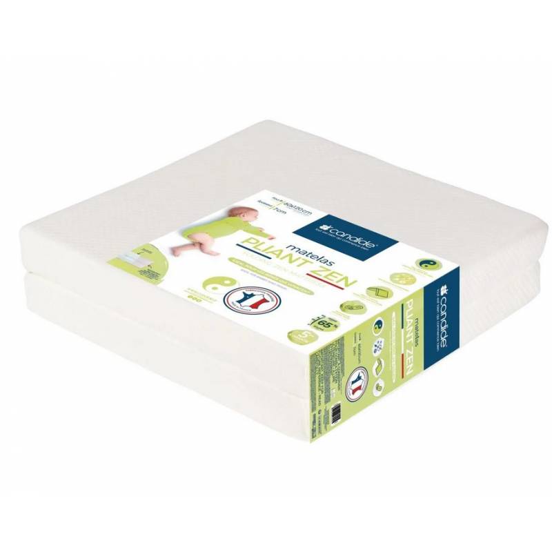 Le matelas bébé Zen pliant en 2 parties de Candide est un matelas idéal pour les bébés qui voyagent.