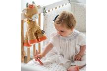 Cette peluche musicale avec boîte à musique intégrée offre à votre tout-petit une douce mélodie "La-Le-Lu". De plus, le tireur de musique de cette peluche est également conçu comme une bague de dentition, ce qui stimule non seulement les réflexes de préhension de votre bébé, mais soulage également la douleur de la poussée des dents. La fourrure moelleuse rend la peluche Mila incroyablement câline et agréable à saisir.