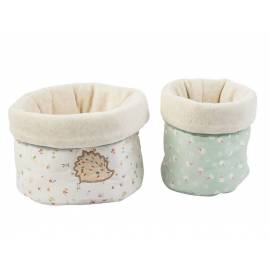Les deux paniers en polyester doux et en coton arborent des motifs floraux subtils qui créent une oasis de calme et une atmosphère chaleureuse. Un accessoire pratique pour chaque parent et aussi un joli cadeau à offrir.