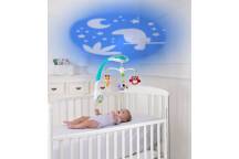 Le Mobile Projecteur de la Forêt de Chicco possède 3 fonctions électroniques qui peuvent être activées seules ou en combinaison : projections de couleurs, musique relaxante, rotation des jouets suspendus.