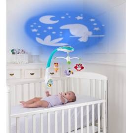 Mobile évolutif 3 en 1 avec télécommande, mélodies classiques, new age et sons de la nature. La projection innovante de l'arc-en-ciel accompagne le bébé à l'heure du coucher.