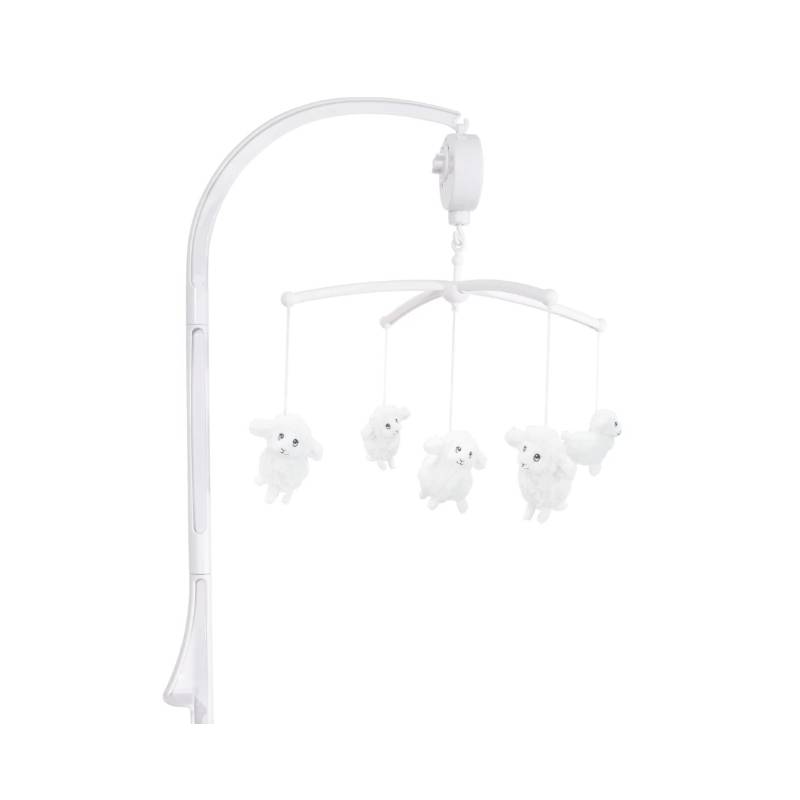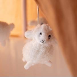 Design : Mobile avec des peluches en forme de moutons, avec un motif doux et agréable.