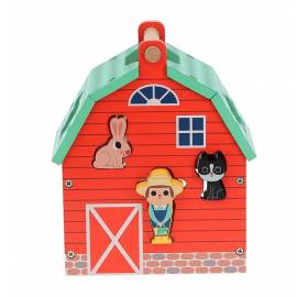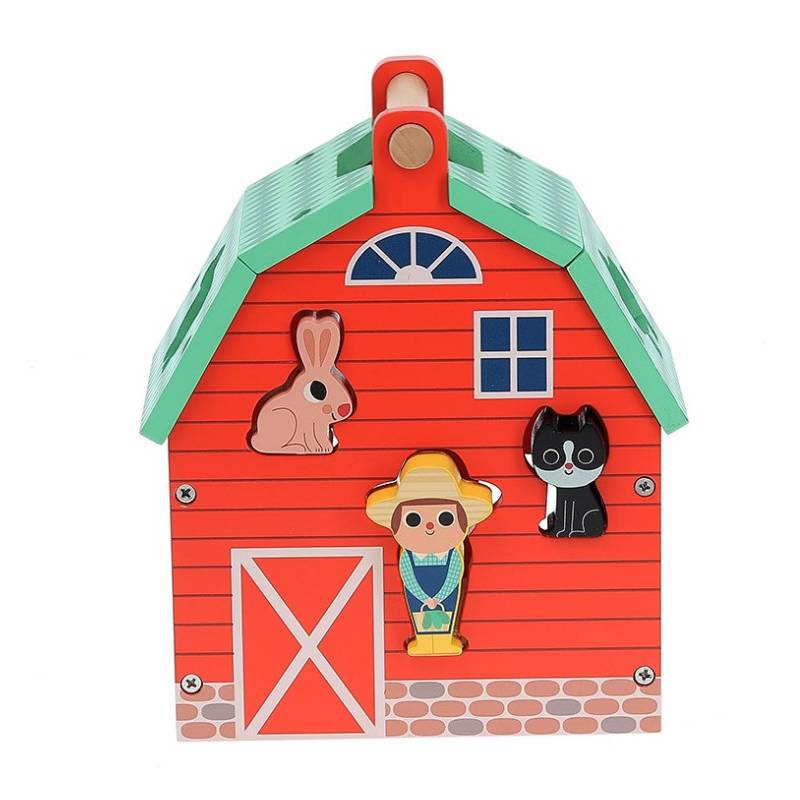 Ils apprendront à leur rythme à manipuler les animaux pour les encastrer dans les espaces correspondants. Une fois encastrées, les pièces sont facilement récupérables grâce à la porte basculante de la maison et à la pente inclinée à l'intérieur. Les enfants prendront également plaisir à jouer avec les figurines animaux, en utilisant la boîte à formes comme un support à leur imagination.
