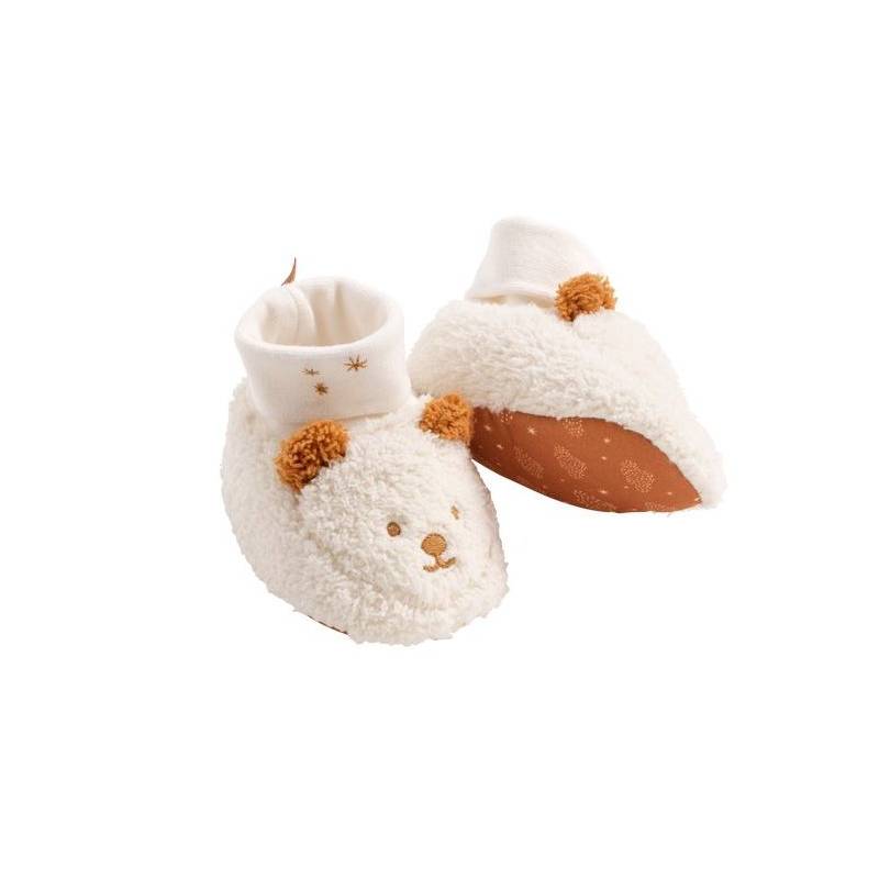 Bébé aura toujours les pieds au chaud et pourra s'amuser avec ses chaussons tout doux et chaud en petits compagnons oursons. Les chaussons Orsino s'associent parfaitement avec les pyjamas du même thème. Taille unique 0-6 mois.