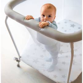 Parc rectangulaire pour bébés, avec bords rembourrés anti-morsures.