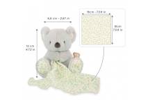 Offrez à bébé un compagnon réconfortant avec ce doudou koala, spécialement conçu pour accompagner ses premiers moments de sommeil. Avec son pelage doux et soyeux et son lange en mousseline, il devient rapidement un repère rassurant pour bébé.