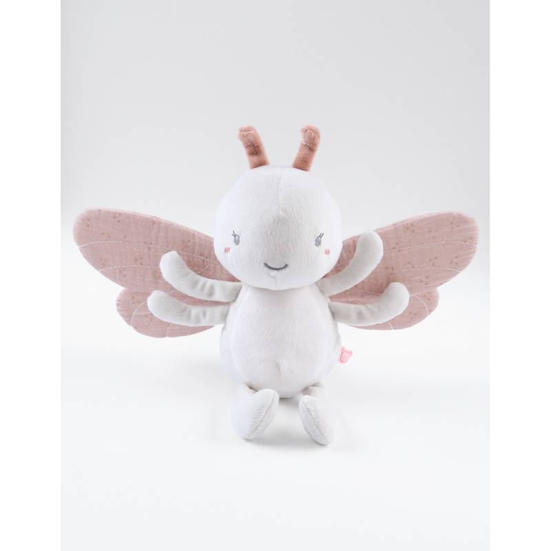 Ses différents matières (ailes en mousseline et "Veloudoux") éveilleront le toucher.
