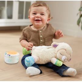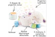 Manon, lumi mouton nuit étoilée de VTech est une jolie peluche équipée d’un module électronique qui apaise et berce votre enfant. La projection au plafond, avec ses belles variations de couleurs, attire son attention, stimule son acuité visuelle et l’aide à s’endormir. Bébé découvre les sons de la nature, des chansons et des mélodies ainsi que des histoires douces qui stimulent son sens auditif et l’accompagnent au pays des rêves.
