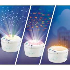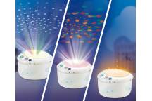 3 disques à insérer sur le module électronique pour découvrir de jolies projections lumineuses ainsi qu’une veilleuse.