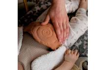 Ergonomique : la spirale indique le sens du massage pour compléter l'action de la chaleur au travers du massage et mieux soulager bébé.