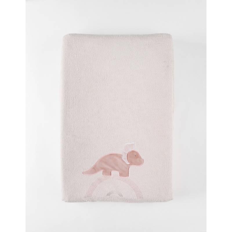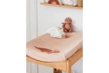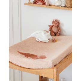 Le matelas à langer rose poudré de la collection Popsie, Gigi & Louli en matière bien absorbante rebrodée de Popsie le tricératops est pleinement adapté à la morphologie de bébé, ce qui lui assure un confort optimal.