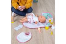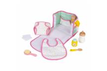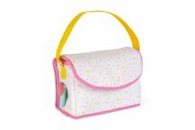 Le sac comporte de multiples poches à l’intérieur et se déplie pour se transformer en table à langer où l’enfant pourra installer confortablement son poupon sur le tissu éponge.