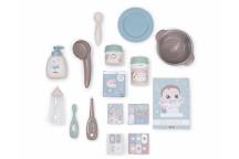 La maison comporte de nombreux accessoires pour agrémenter les fonctions de jeu : 1 faitout, 1 assiette, 1 cuillère, 1 biberon, 1 brosse à dents, 1 petit pot, 1 thermomètre mécanique, 1 flacon pousse-mousse, 1 douchette avec action mécanique, 1 boite de pansements et des planches de pansements, 1 flacon de talc factice, 1 livret pour apprendre à prendre soin de bébé.