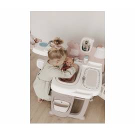 Votre petit pourra commencer par donner à manger à son poupon dans le coin cuisine, et ensuite faire un petit tour du côté de la salle de bain pour le changer et le laver. Enfin il suffira de border bébé, et de lui lire une histoire à la lueur de la lampe phosphorescente pour qu'il s'endorme !