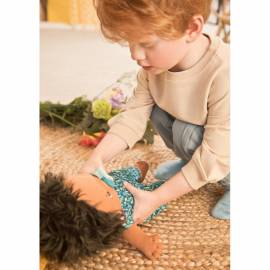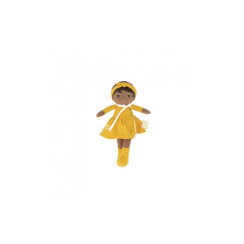 Naomie suivra bébé dans ses aventures dès la naissance ! C'est une poupée élégante de 25cm parée d'une belle tenue arborant la couleur du soleil. Elle possède un ruban où vous pourrez inscrire le nom de votre enfant et la rendre unique. De doux présages sont transmis par cette poupée pleine de douceur et d'insouciance.