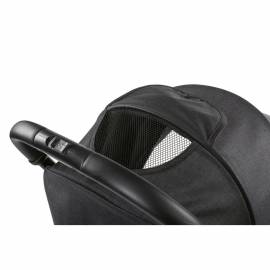La partir supérieure de la capote de la poussette Trolley Me est équipée d'une fenêtre en maille pour garder un œil sur bébé.