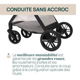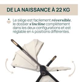 Utilisable de la naissance jusqu’à 22 kg, cette poussette accompagne votre enfant pendant plusieurs années.