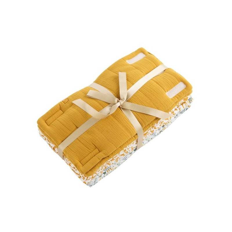 Les protèges barreaux jaunes topaze Promenons nous aux motifs délicats et aux couleurs lumineuses sont parfaits pour s'adapter aux barreaux ronds ou plats de tous les lits et parcs bébés. Positionnez-les sur les barreaux près de la tête de bébé pour le protéger. La fermeture s'effectue par pattes auto agrippantes pour s'ajuster à tous les types lits et parcs bébés.