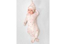 Le bonnet à nouer accompagne la croissance de bébé. Le coffret comprend une combinaison et un bonnet à nouer pour nouveau-né.
